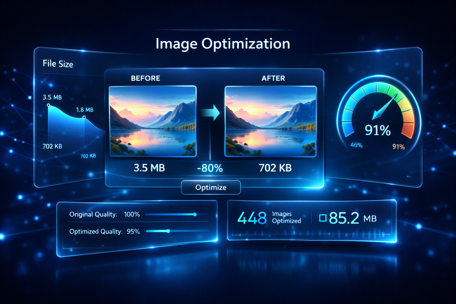 Large image files are one of the most common reasons websites load slowly. Whether you run a blog, ecommerce store, portfolio, or landing page, image optimization plays a major role in performance.